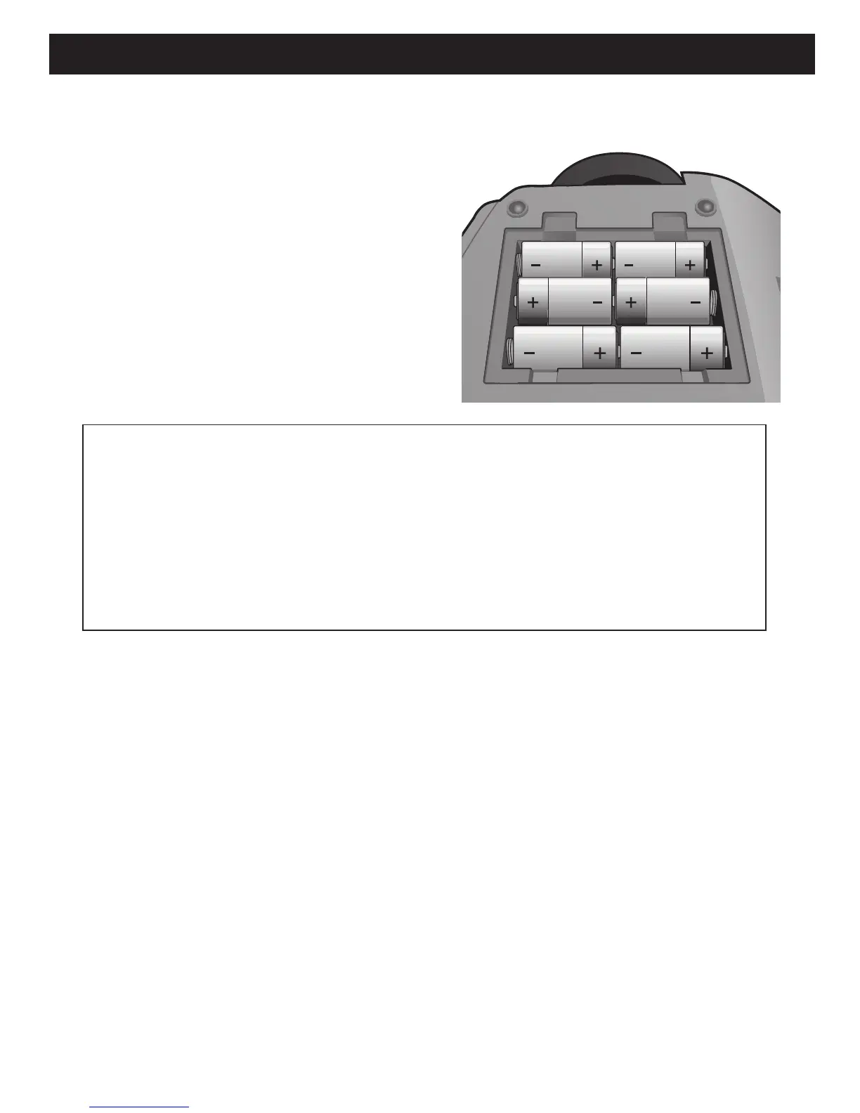 lifting the battery door off. Insert six (6) ‘C’