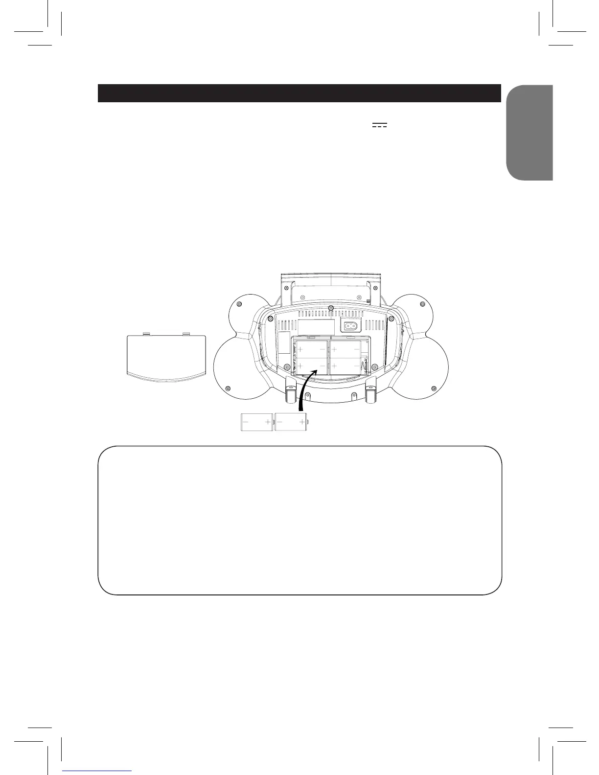 Deze Radio/CD heeft ofwel zes (6) “C” batterijen nodig (niet bijgeleverd)