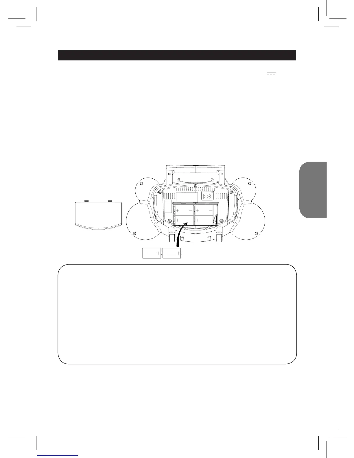 2. Introducir seis (6) pilas tamaño C (no incluidas) en la posición adecuada de