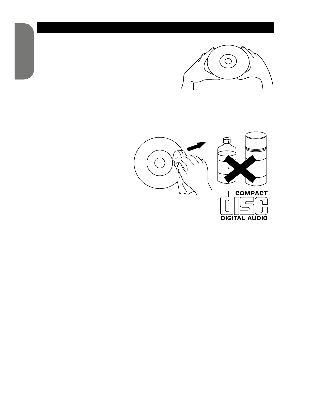 • Compact Disks moeten in hun hoes bewaard worden om schade te
