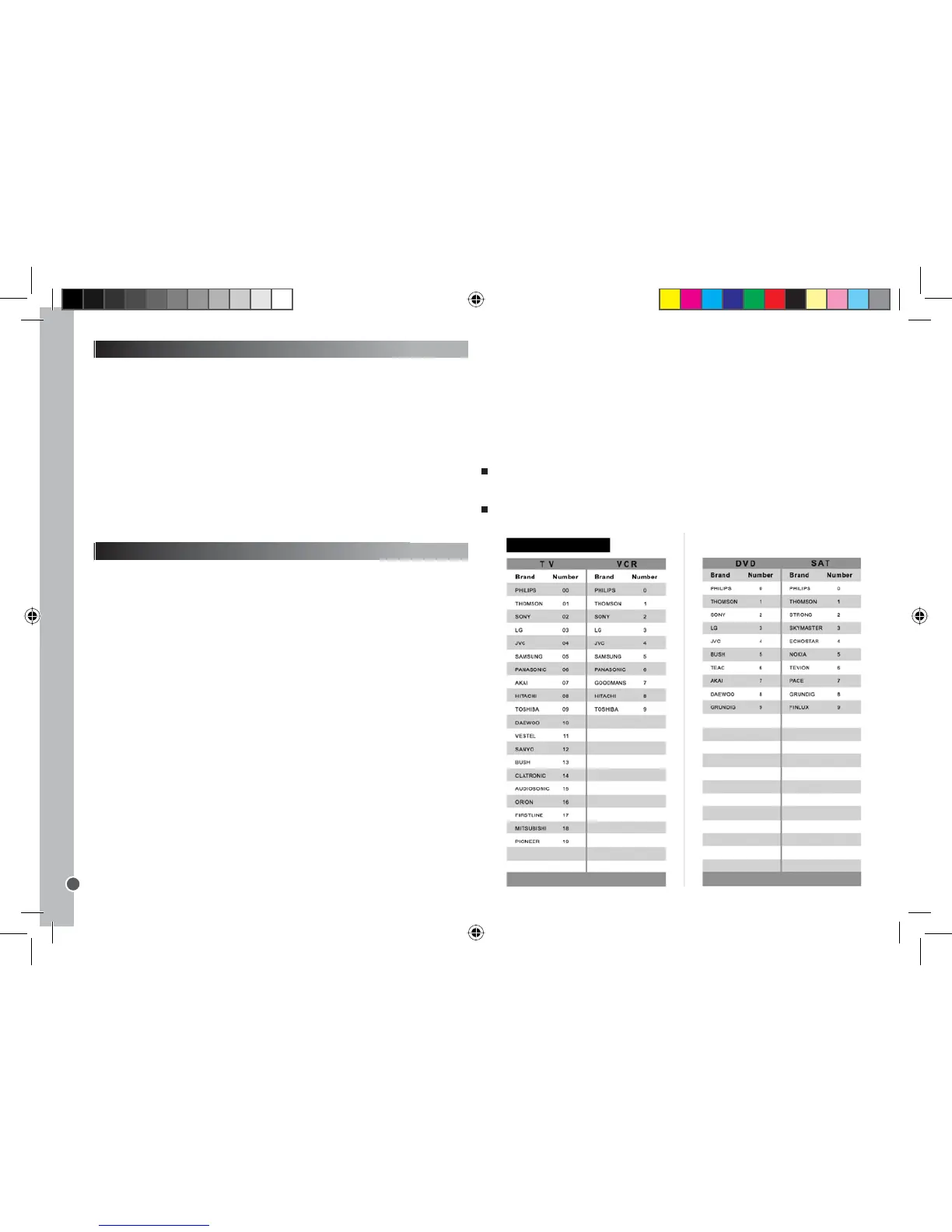 Existem 20 das marcas de televisão mais populares e 10 marcas de DVD, VCR