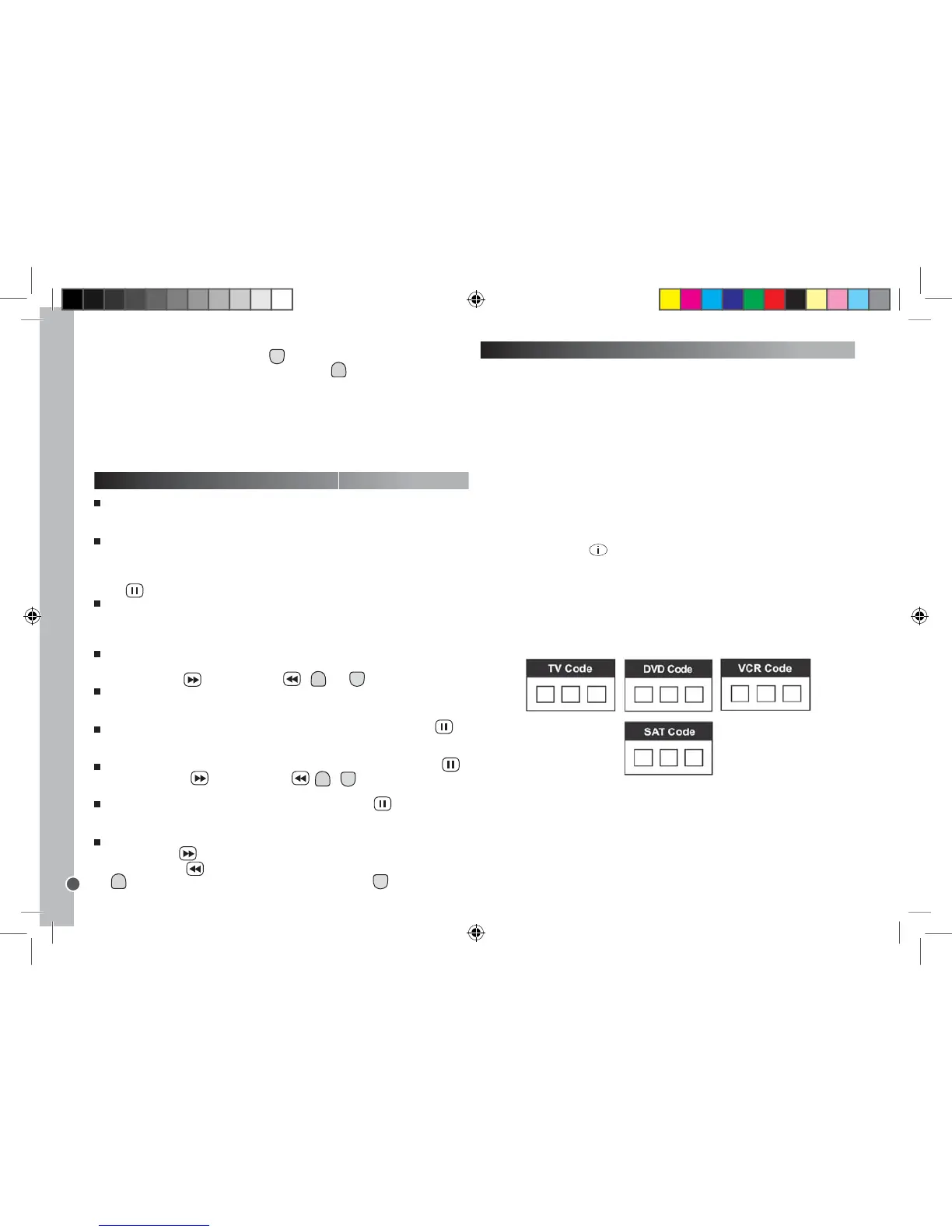 die Schnellrücklauf Taste (sendet die vorigen 10 Codes, stoppt dann),
