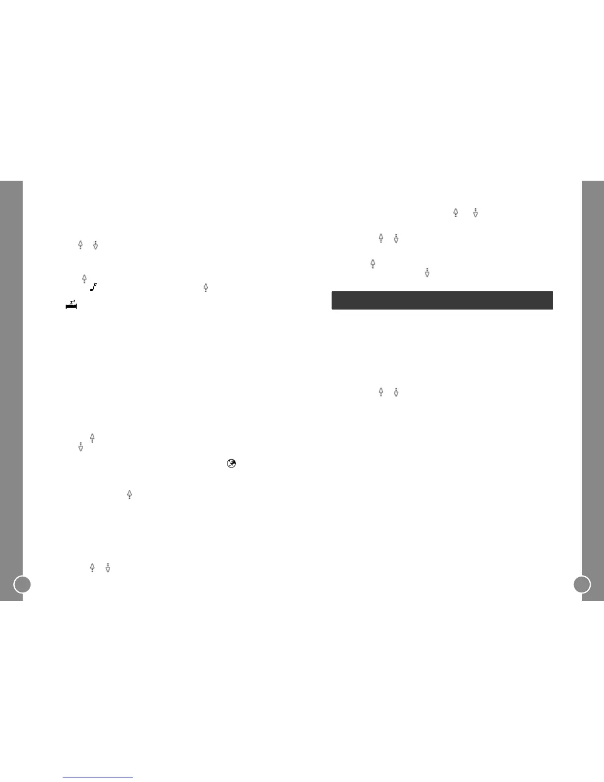 - When the alarm rings and the snooze function is on, press any key