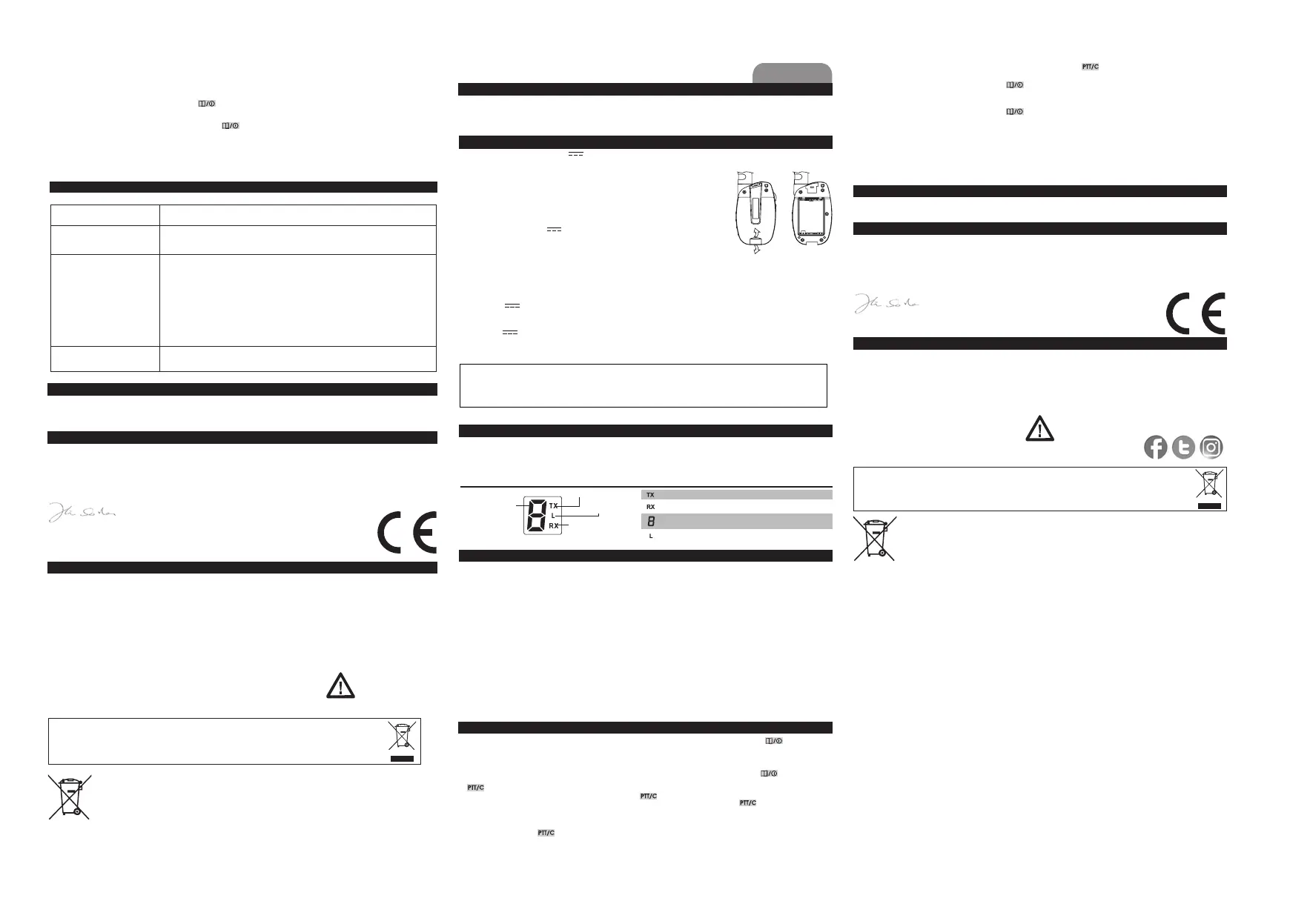 • La trasmissione PMR avviene su frequenze aperte. Identicati prima di parlare, perché altri utenti potrebbero trasmettere sullo stesso