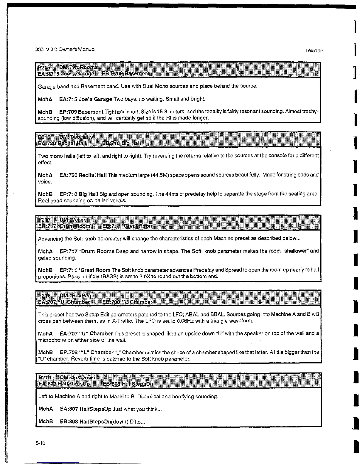 MchB EP:710 Big Hall Big and open sounding. The 44ms of predelay help to separate the stage from the seating area