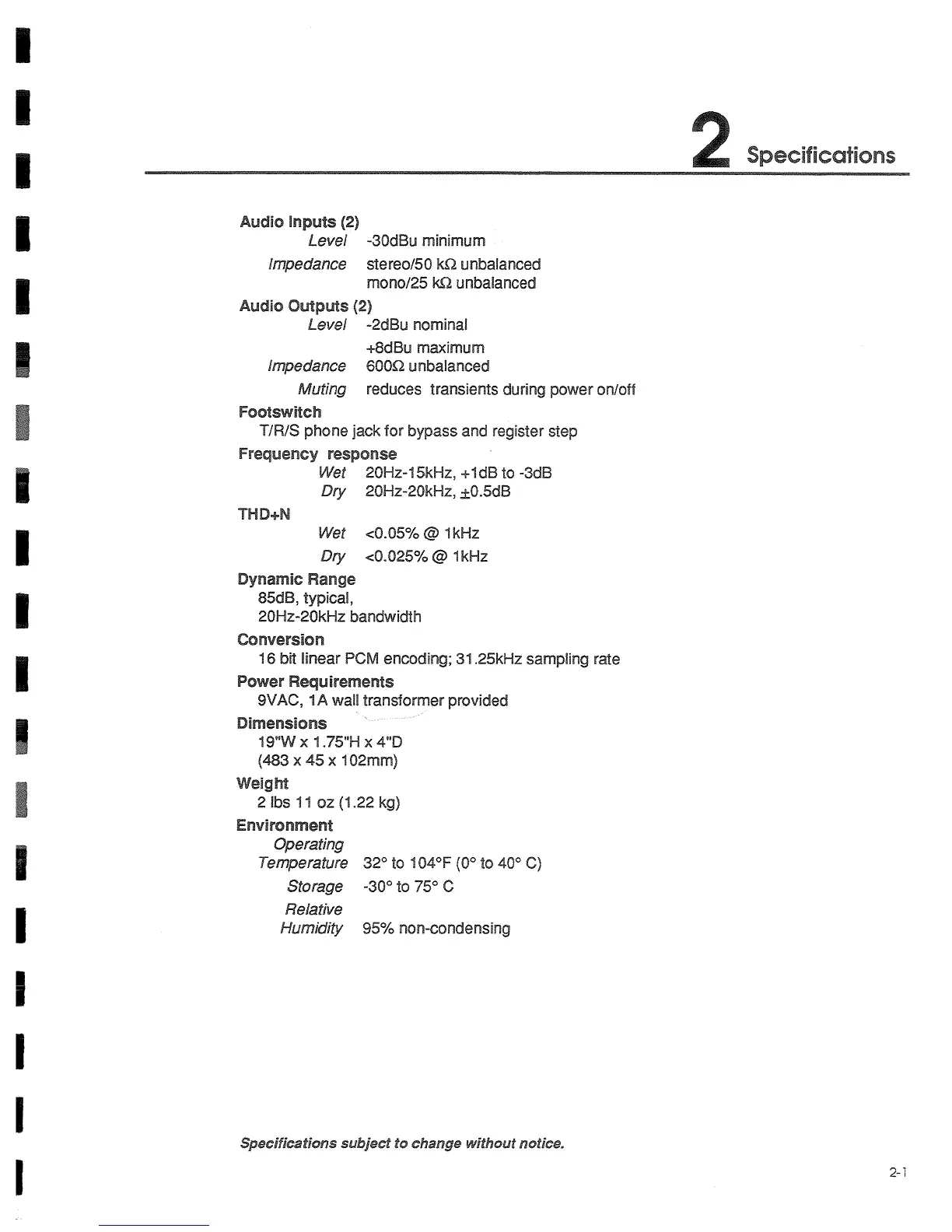 Lexicon ALEX - Specifications
