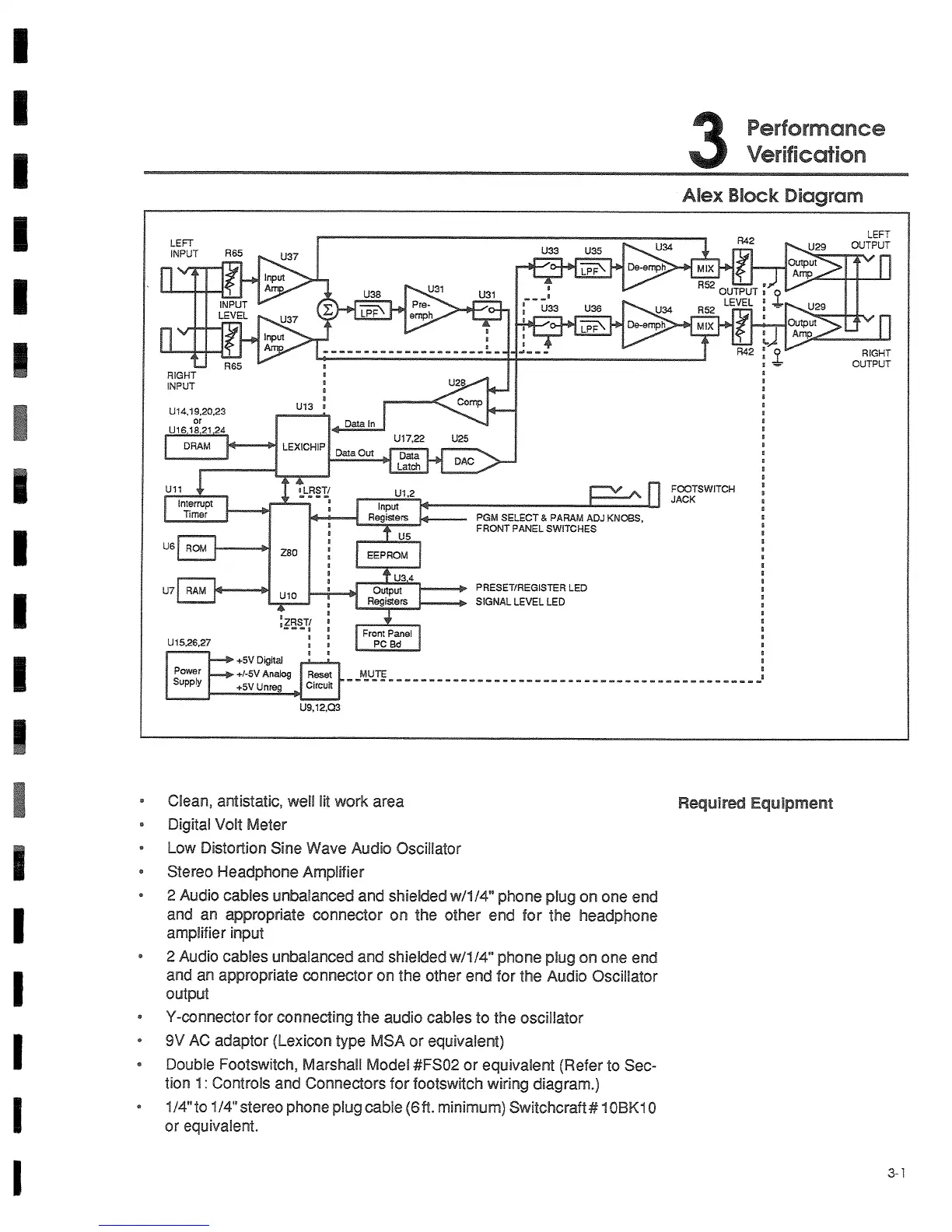 Lexicon ALEX - Performance Verification; Alex Block Diagram; Required Equipment