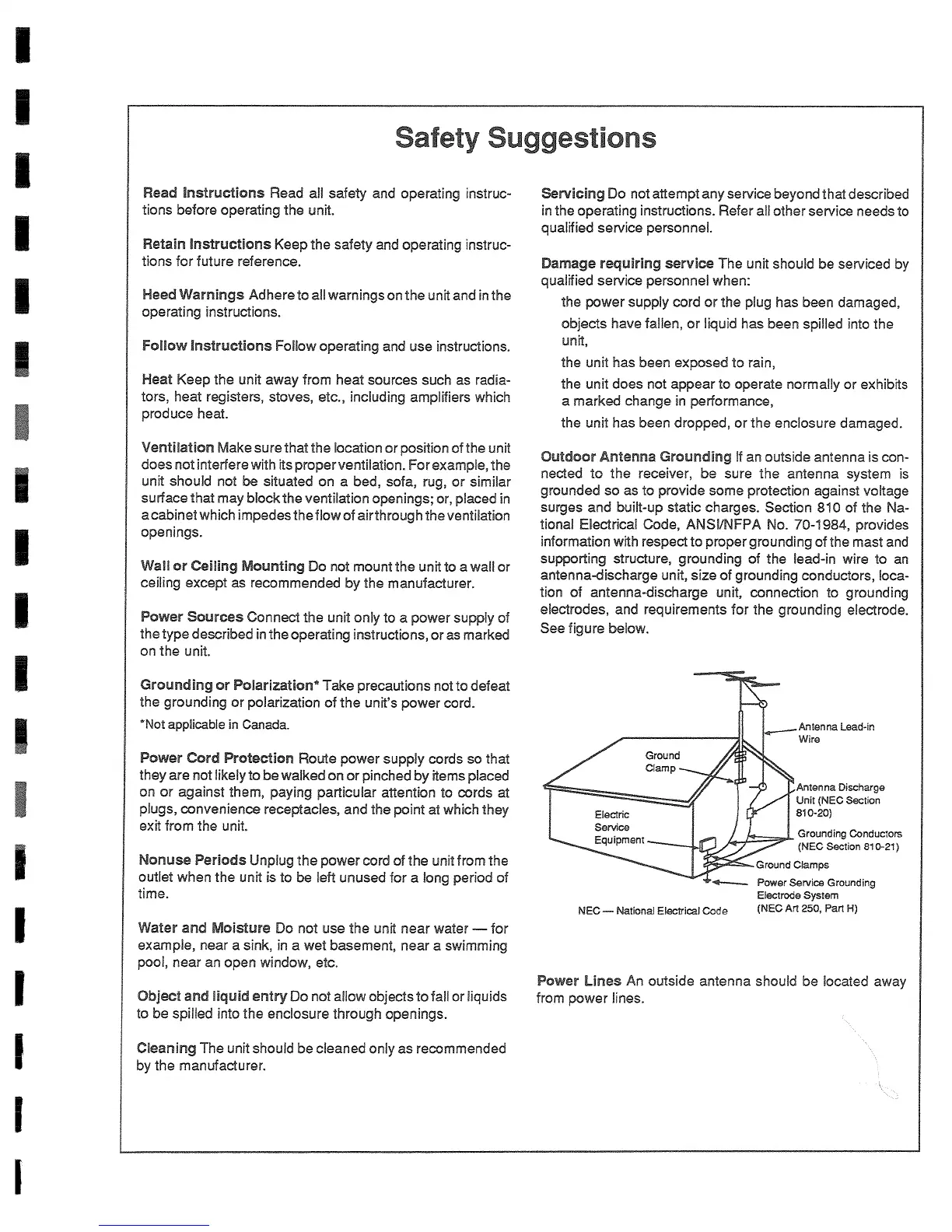 Lexicon ALEX - Safety Suggestions; Outdoor Antenna Grounding