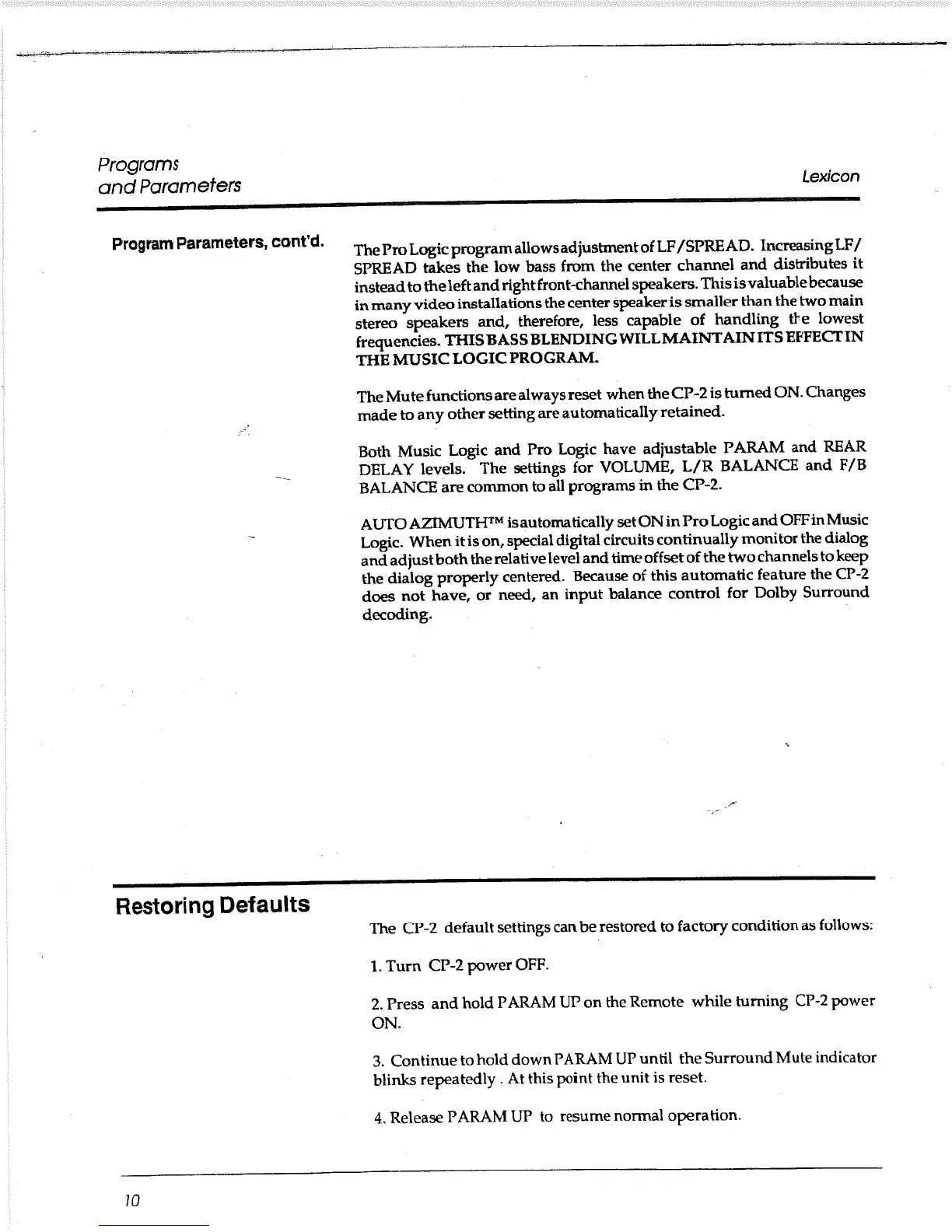 Lexicon CP-2 - Restoring Defaults