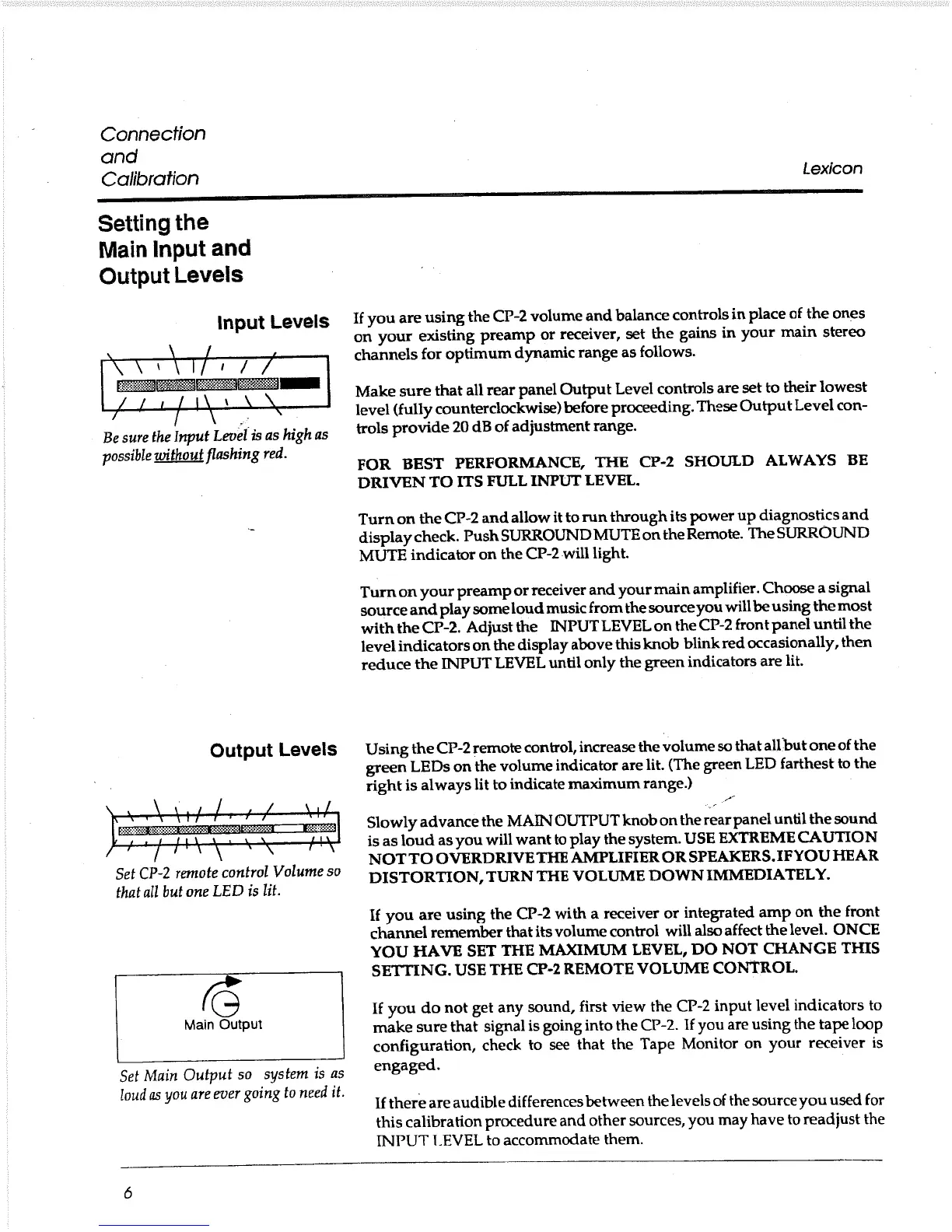 Lexicon CP-2 - Setting the Main Input and Output Levels