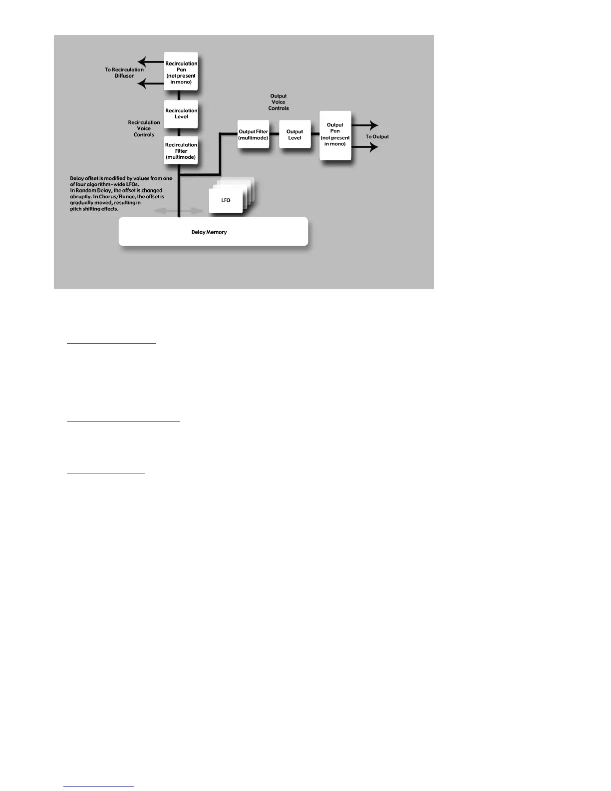 Delay times may be modulated by signal level, LFO or random values.