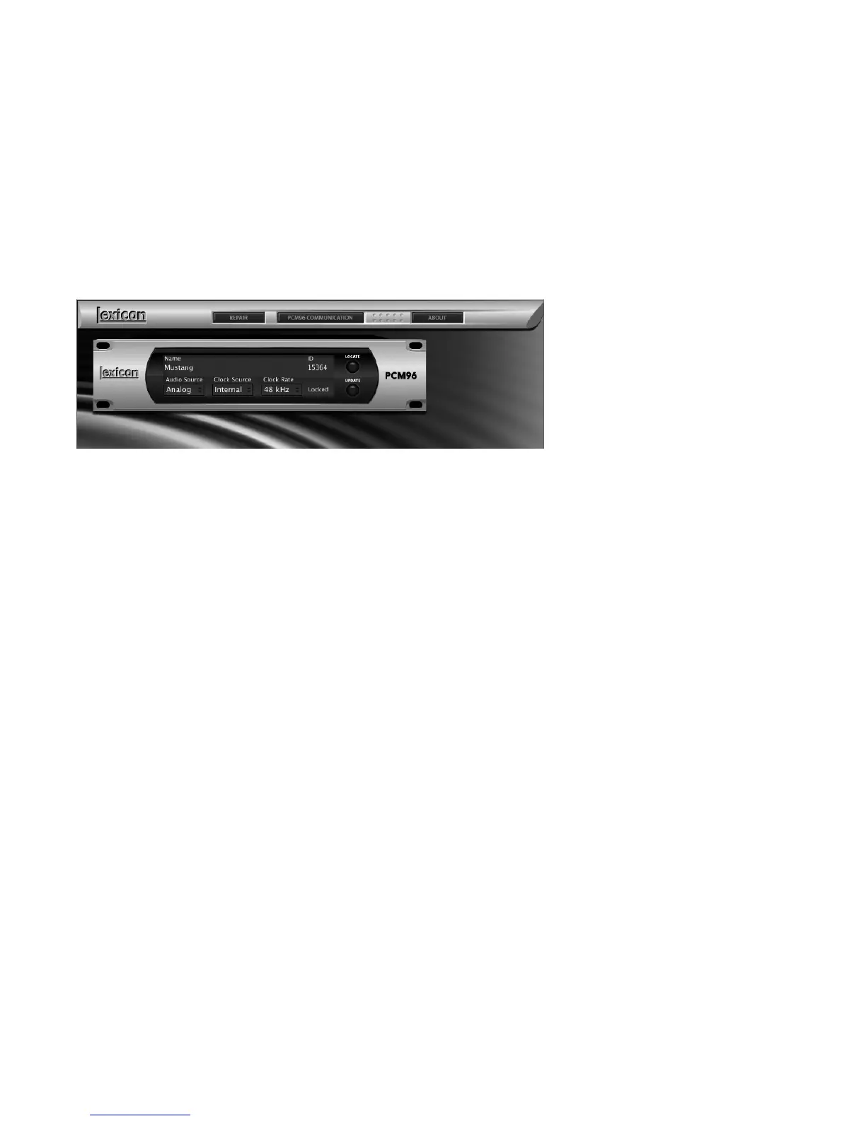 Controls the PCM96 unit’s Clock Rate parameter. Select 44.1 kHz, 48 kHz,