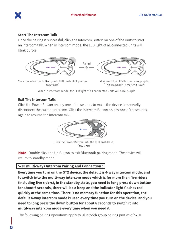 Whenin intercom mode,the LEDlight ofall connectedunits will blink purple.