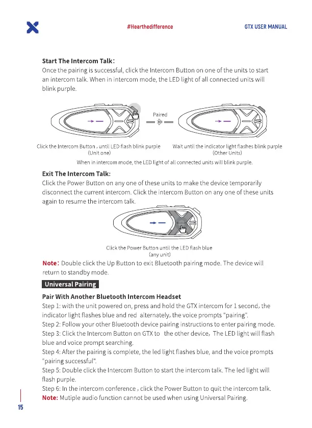Whenin intercommode, the LEDlight of all connectedunitswill blink purple.