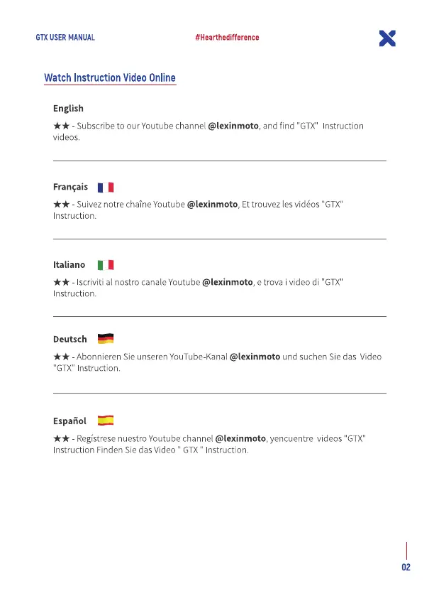 - Subscribe to our Youtube channel@lexinmoto, and find "GTX"