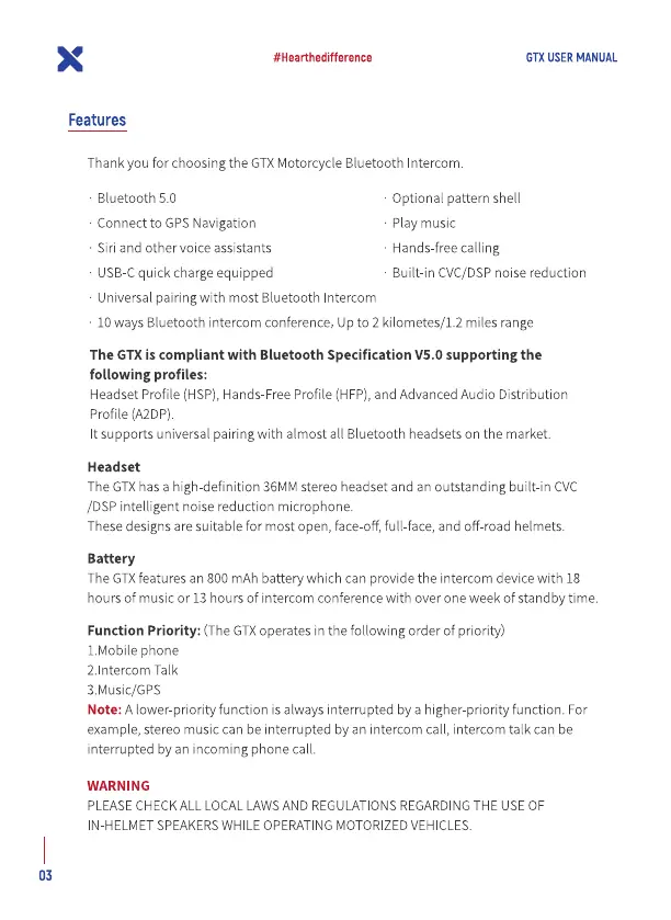 hank you for choosing the GTXMotorcycle Bluetooth Intercom.