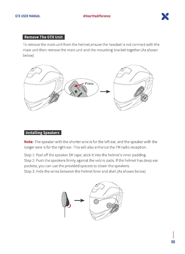Step 2: Pushthe speakersfirmly against the velcro pads. If the helmet has deep ear
