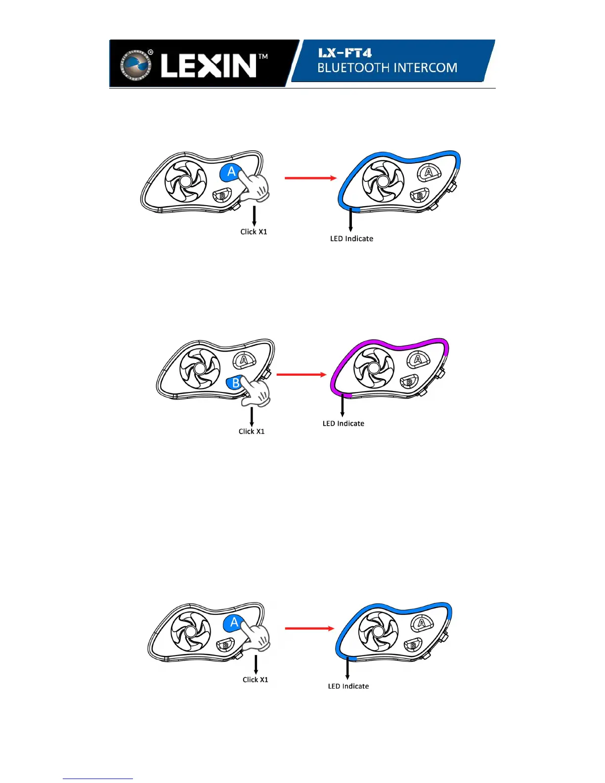 connected, the LED will flash 3 times in blue every 3 seconds on both units.