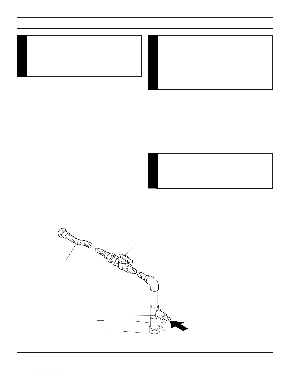 A listed manual shutoff valve must be installed upstream of the appliance. Union tee and plugged