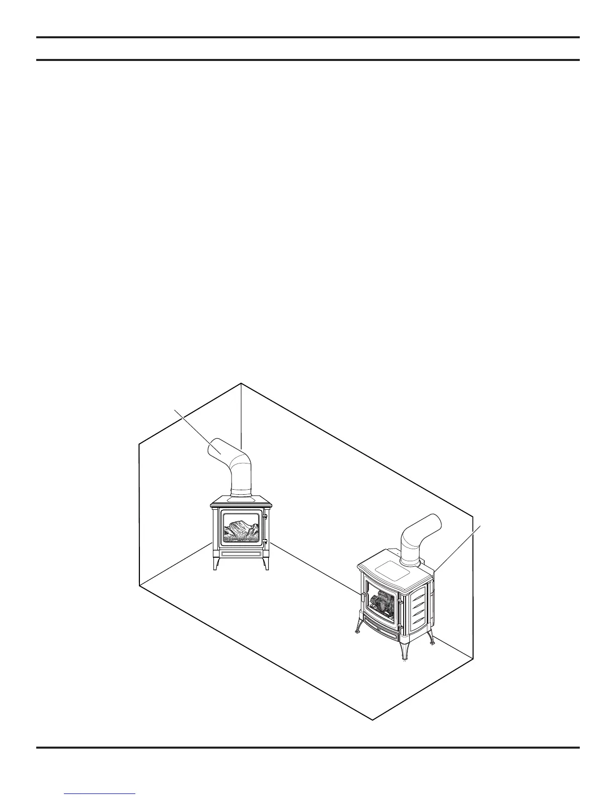 • This stove may be installed along a wall, across a corner, or use an exterior chase. See Figure 3 for suggested locations.