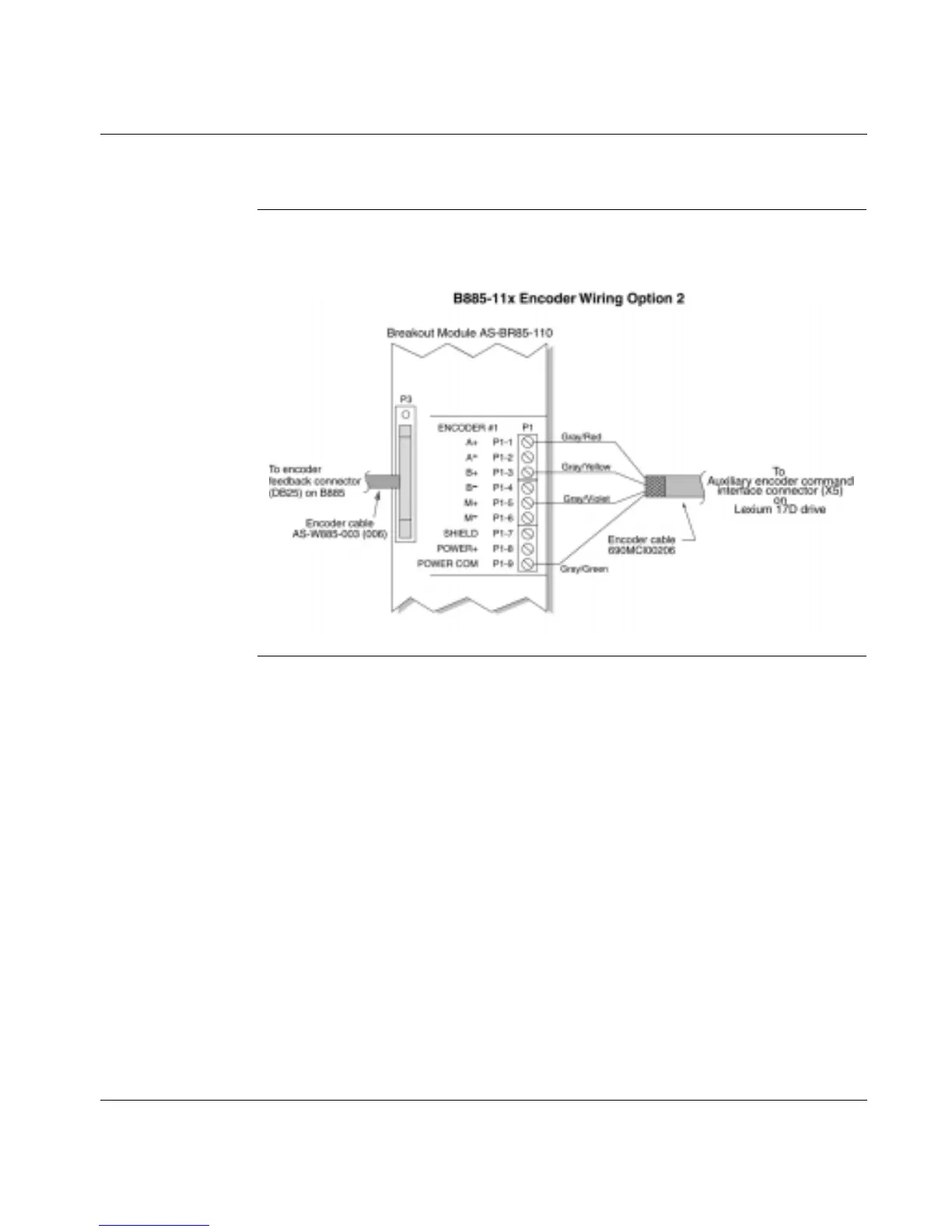 encoder wiring between a B885-11x motion module and an Lexium 17D drive.