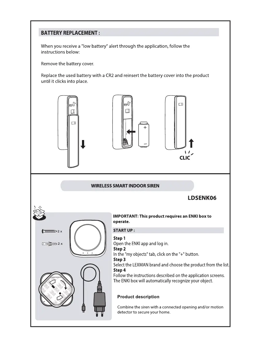 LEXMAN 85170908 - Wireless Indoor Siren Installation and Features; Indoor Siren Overview and Start Up; Indoor Siren Product Description; Siren Battery Replacement