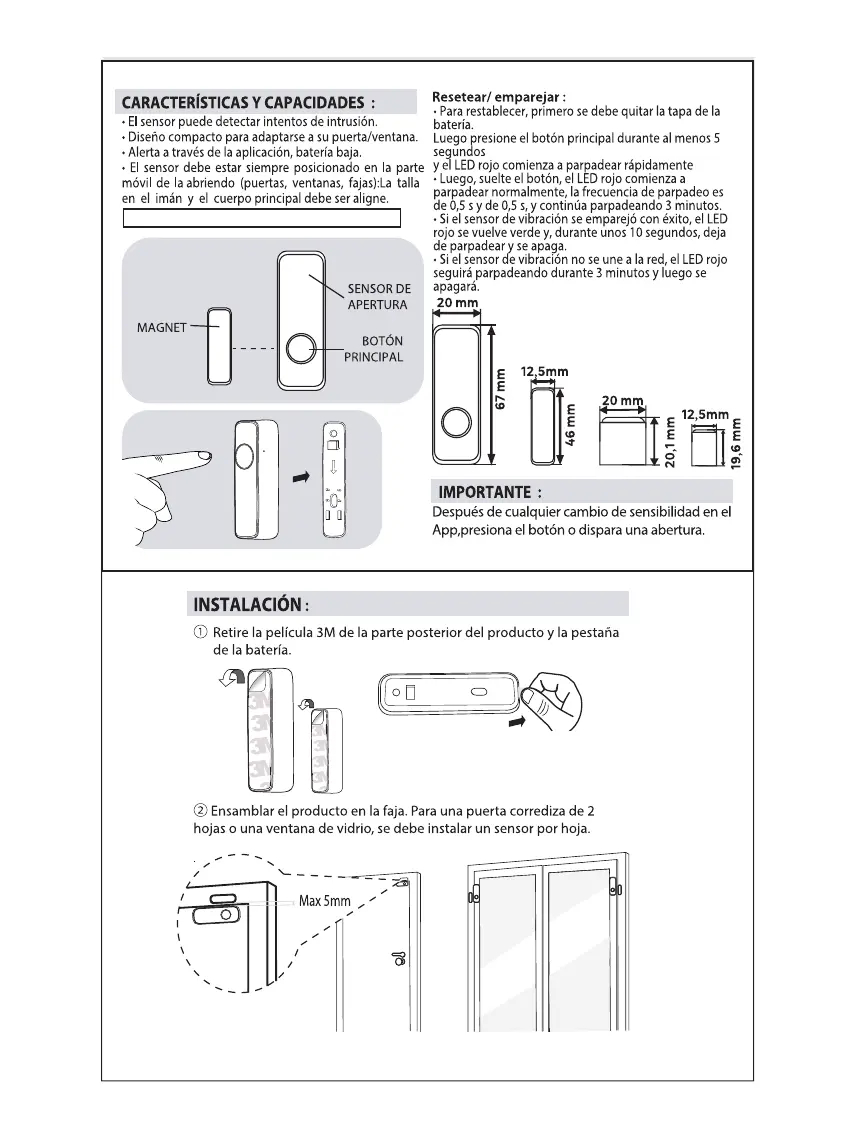 El sensor “B” sólo puede utilizarse en modo de vibración.