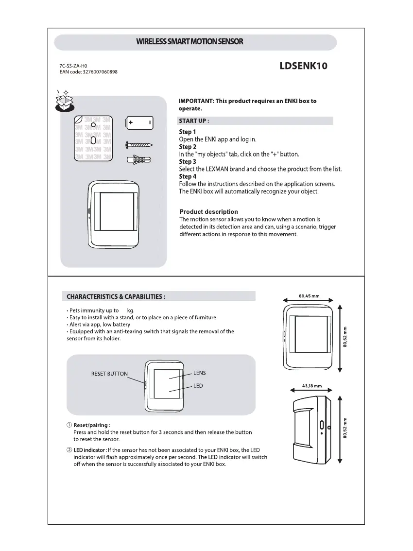 LEXMAN LDSENK09 - Motion Sensor Installation and Specifications