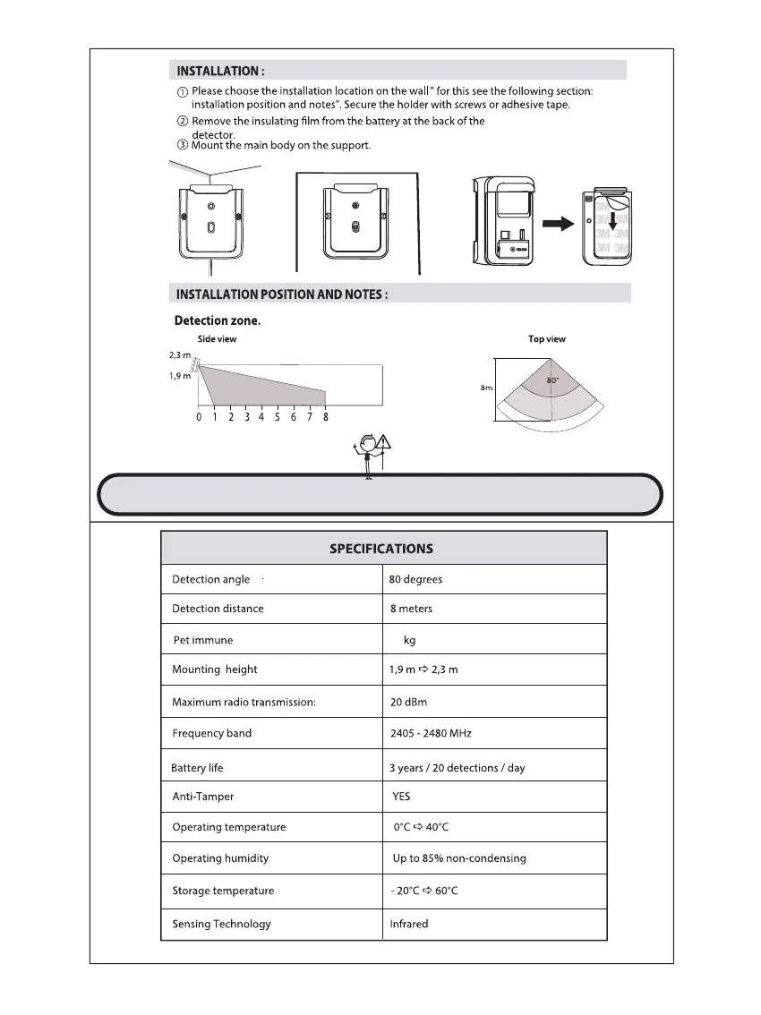 The detection of pets can vary according to the ambient temperature, the body shape of the animal, the fitting