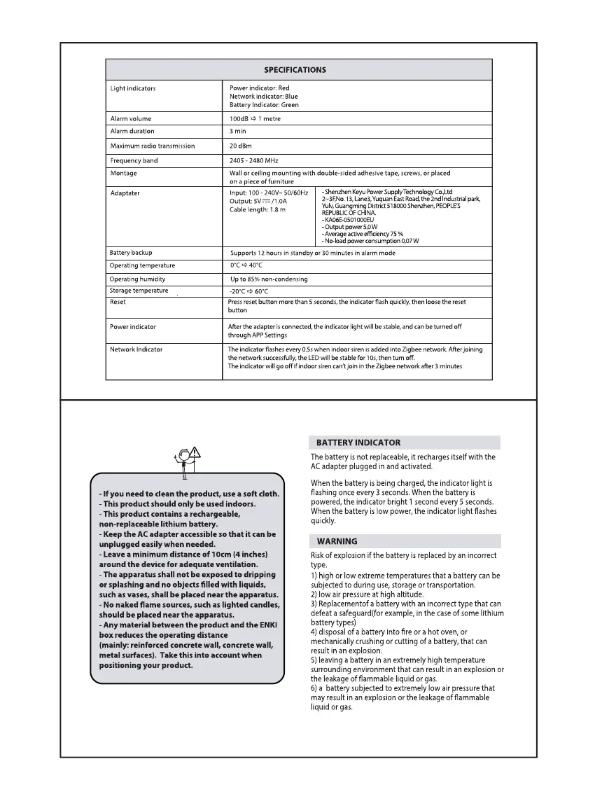 LEXMAN LDSENK09 - Siren Specifications and Battery Information