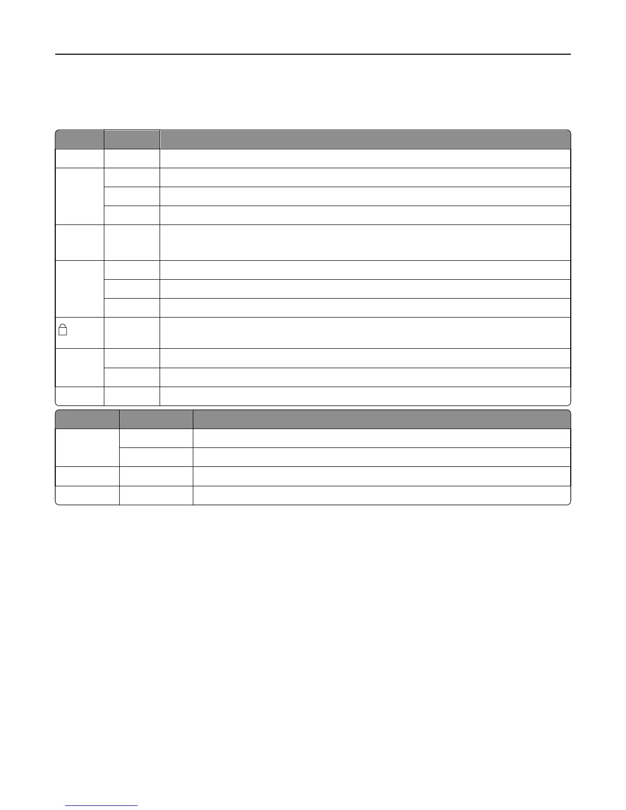 The following tables describe the light patterns on the control panel.
