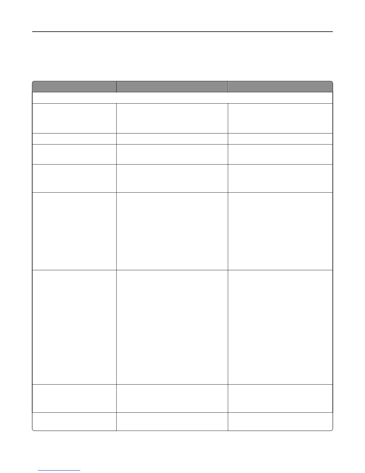 Printer features by model
