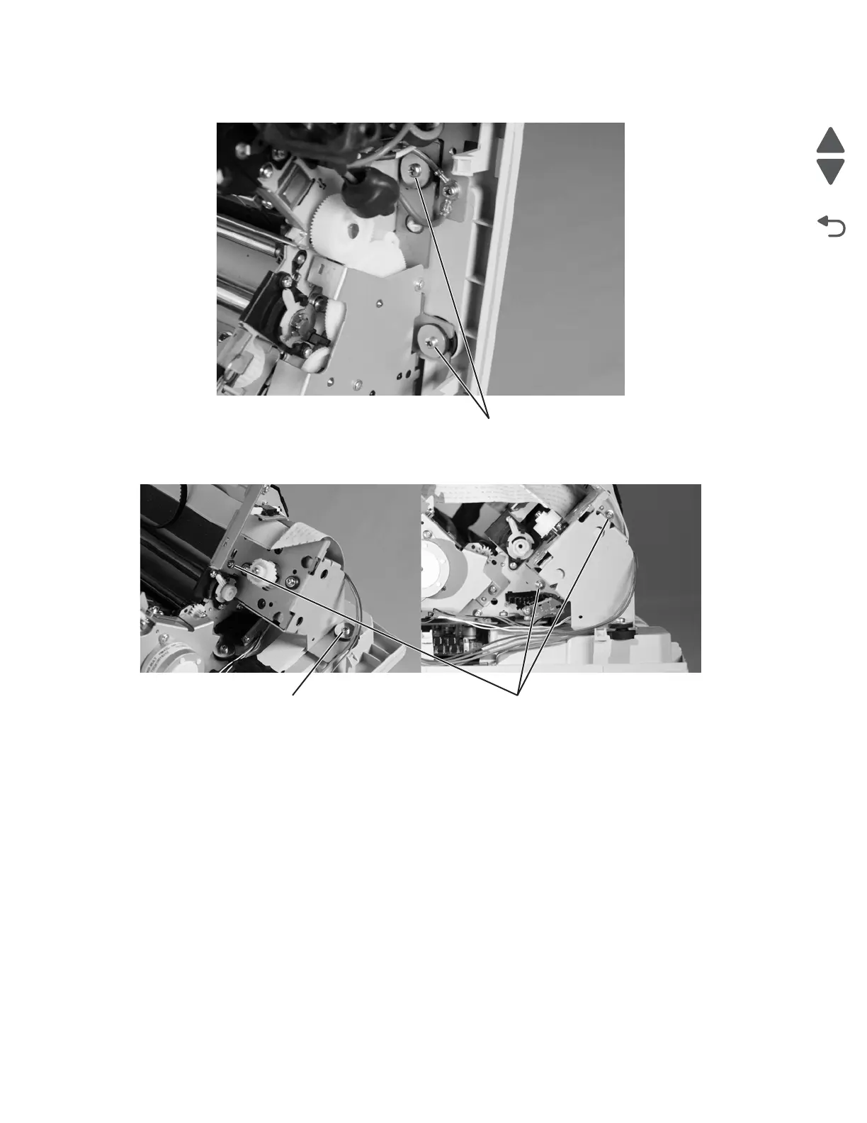 13. Remove the carrier motor bracket from the print unit by pulling up and out on the rubber grommet (F)