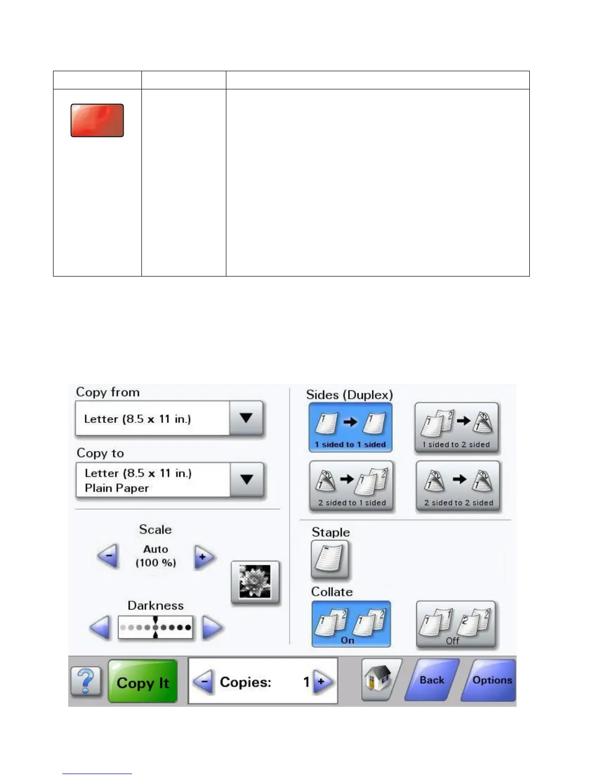 The touch screen appears as follows when the touch screen MFP is a mono printer.
