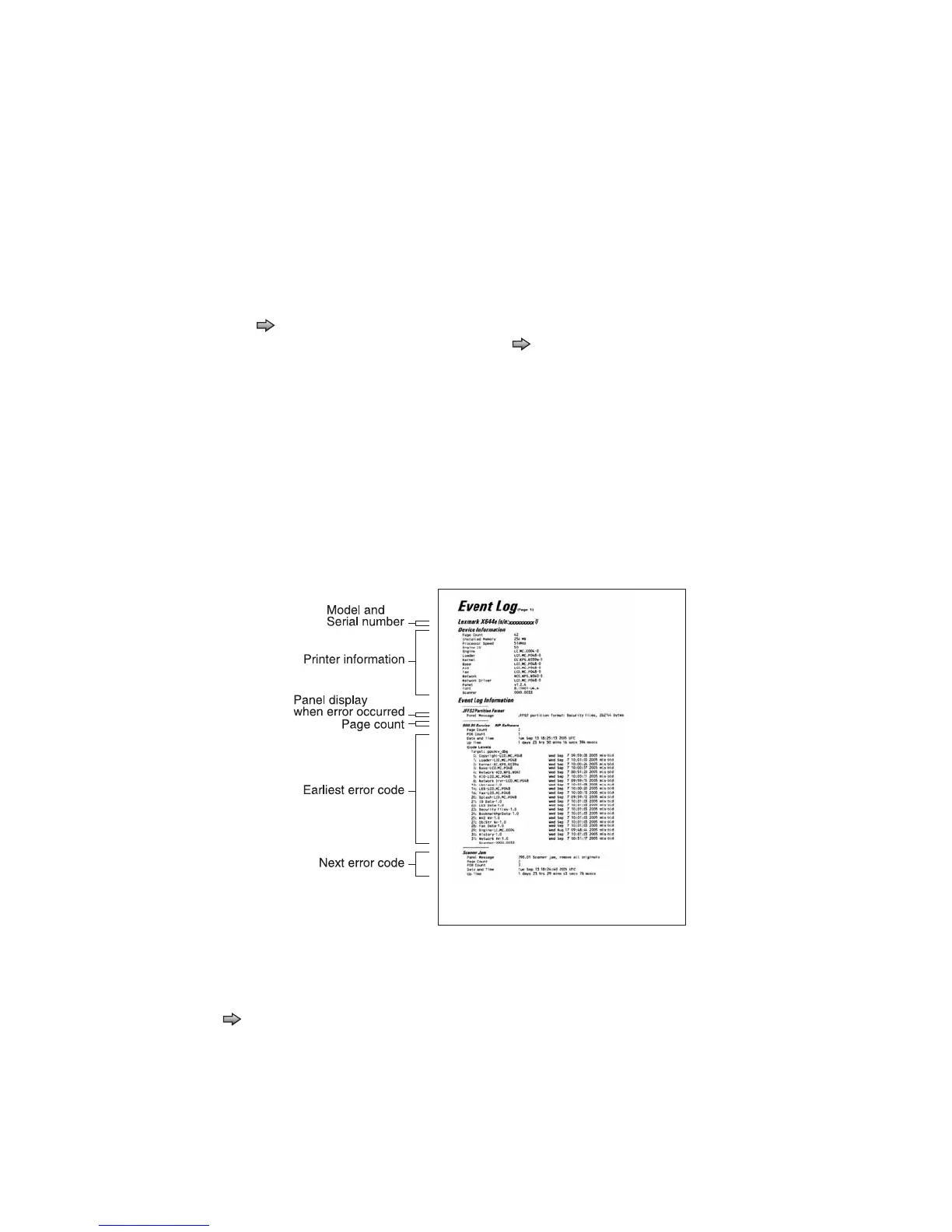 The printed event log can be faxed to Lexmark or your next level of support for verification or diagnosis.