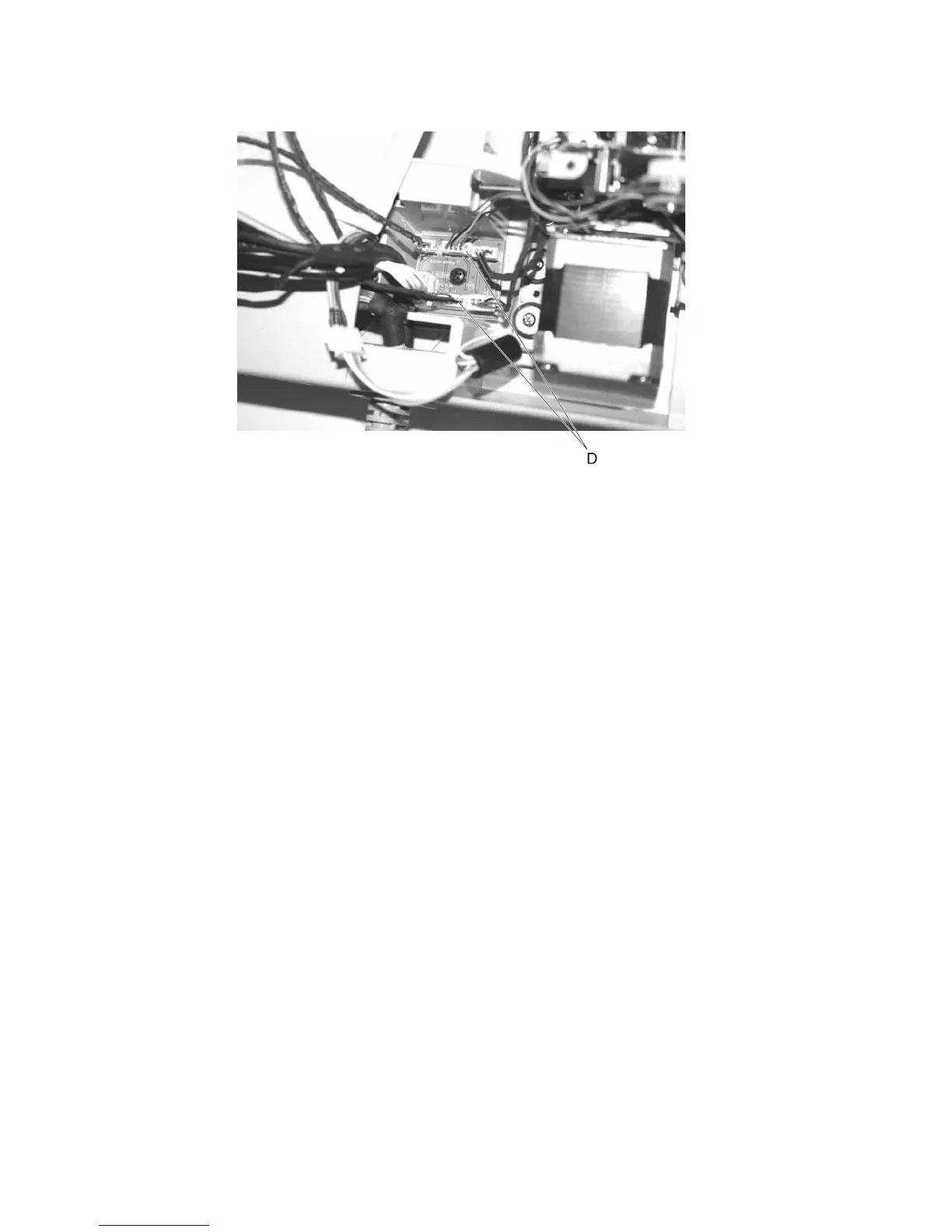 7. Disconnect the paper present/paper feed cables (D) from the ADF sensor board.