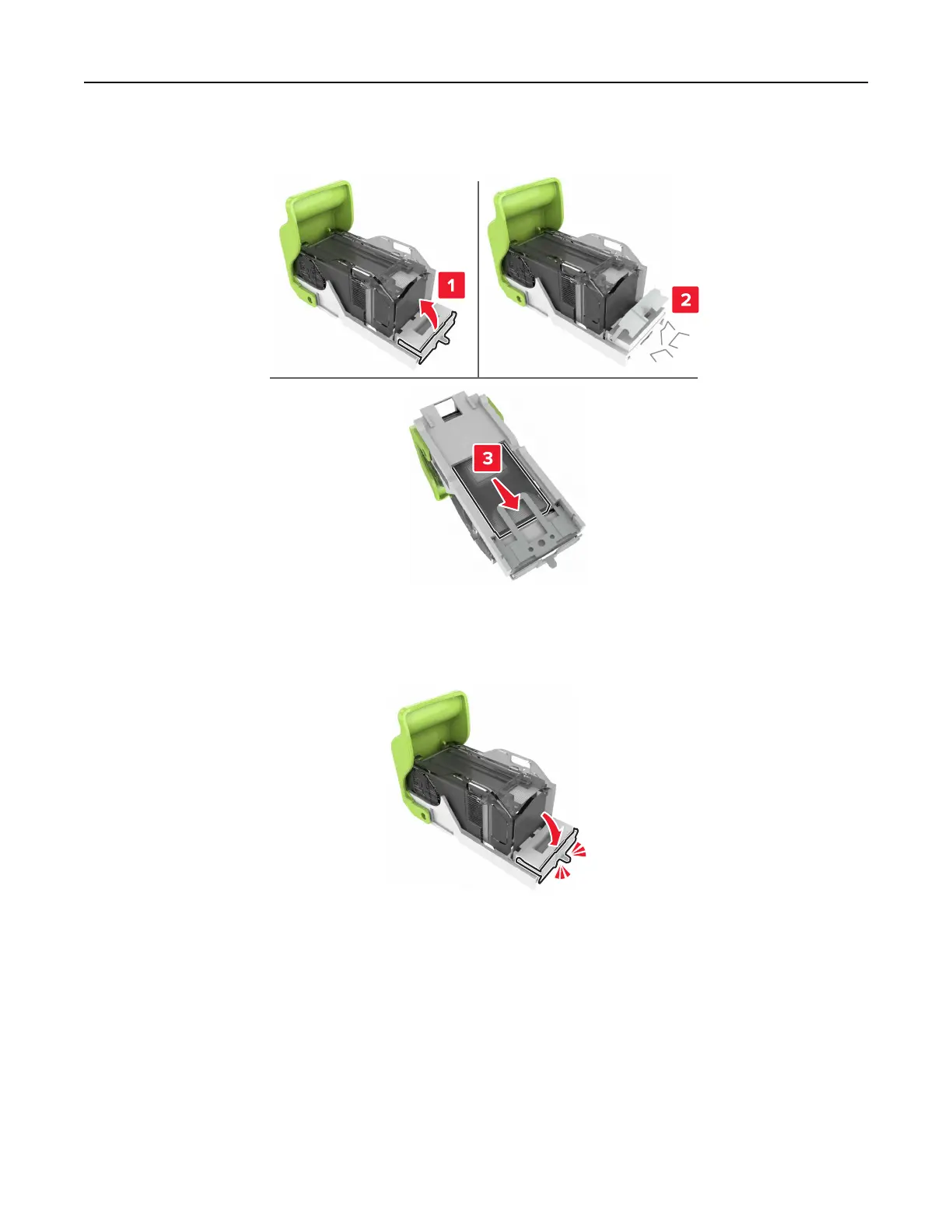 Note: Do not insert the staples that came out of the cartridge.
