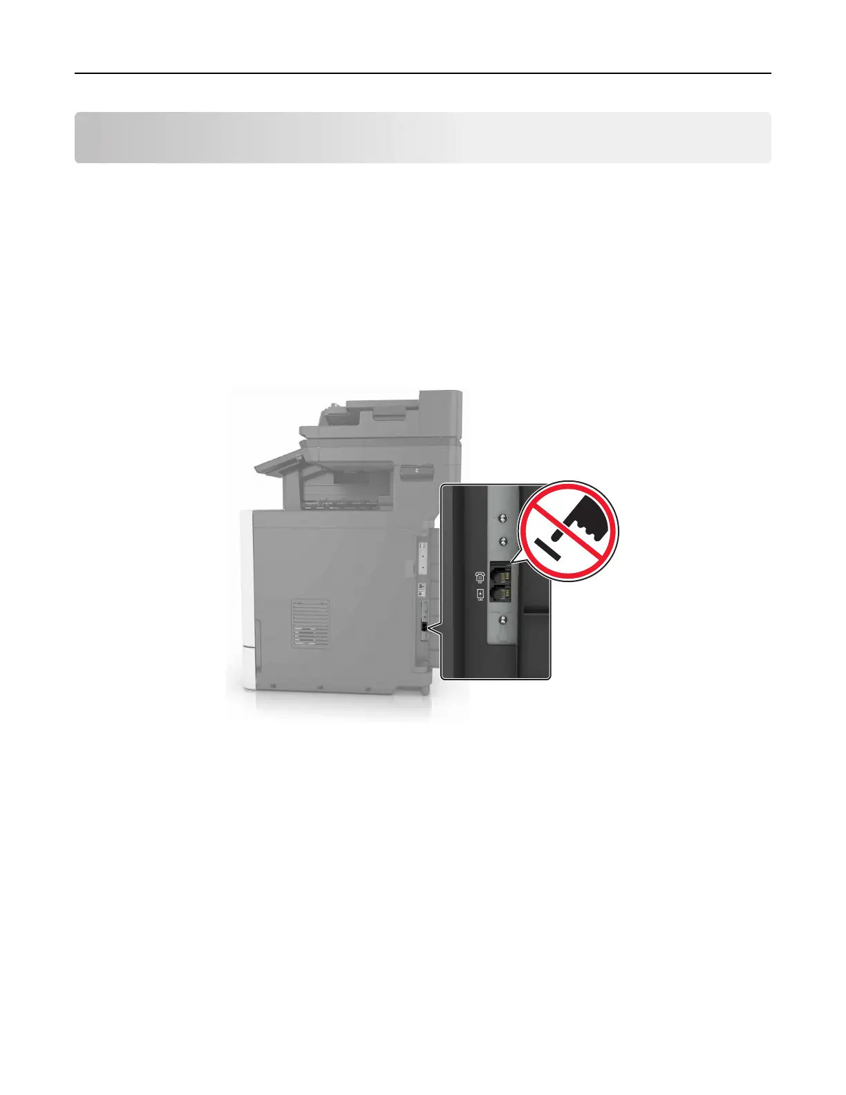 Warning—Potential Damage: Do not touch cables or the printer in the area shown while actively sending or