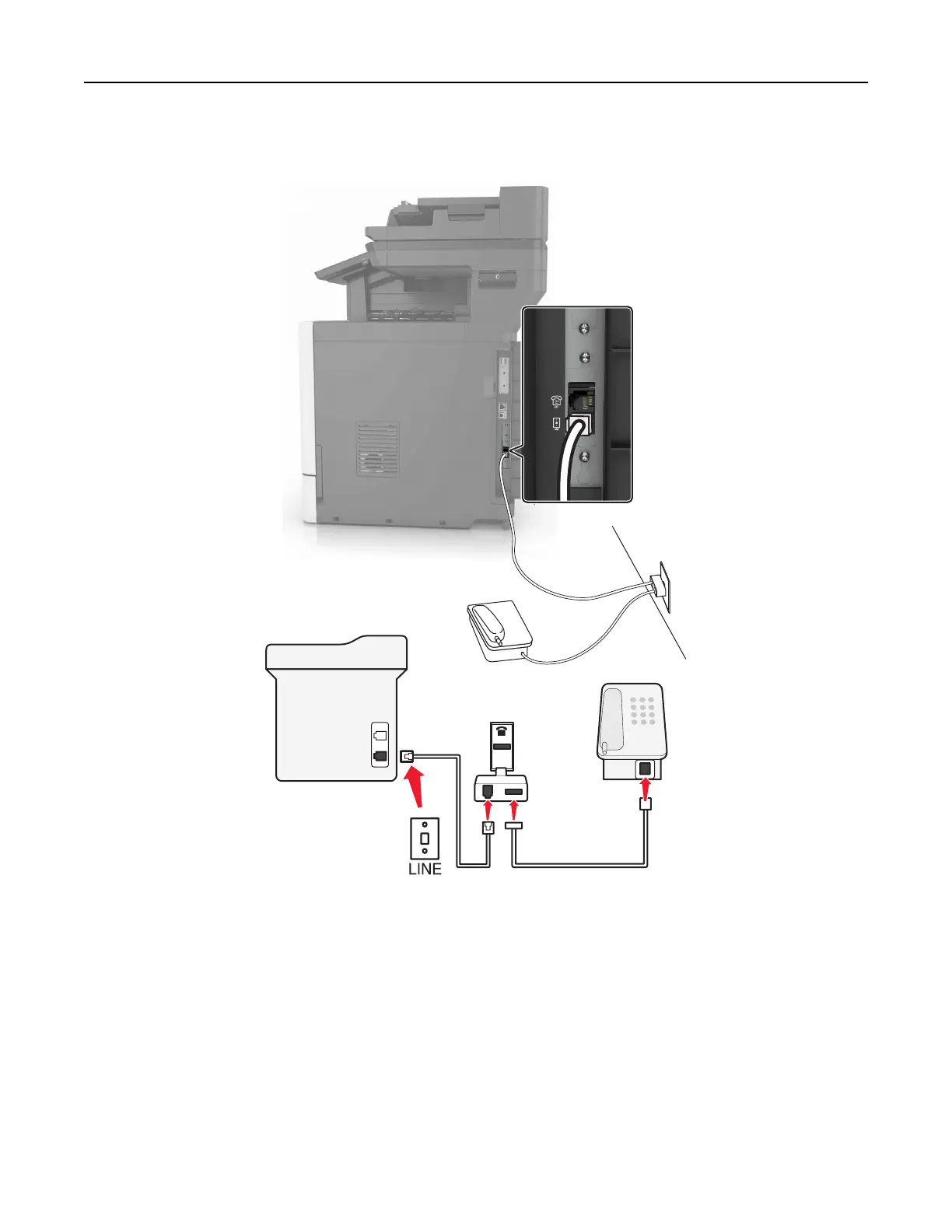 1 Connect one end of the telephone cable to the line port of the printer.