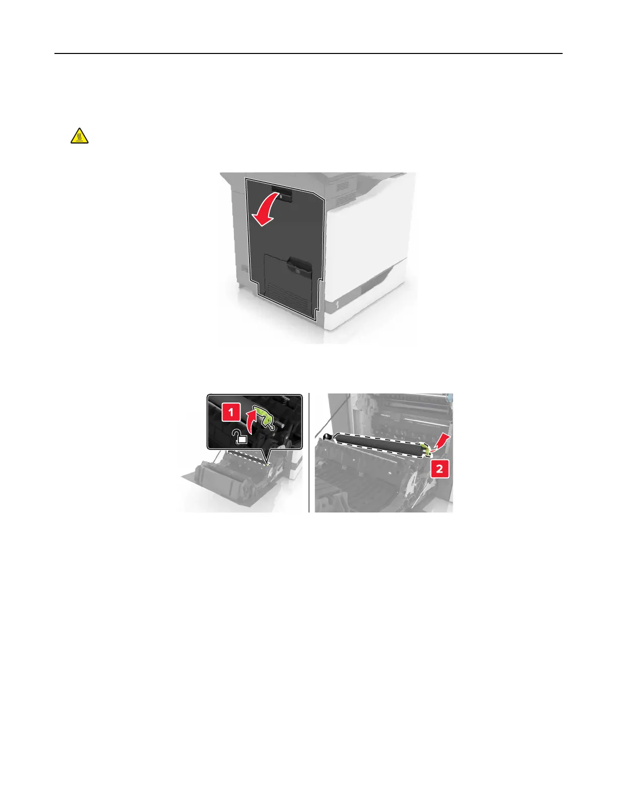 CAUTION—HOT SURFACE: The inside of the printer might be hot. To reduce the risk of injury from a