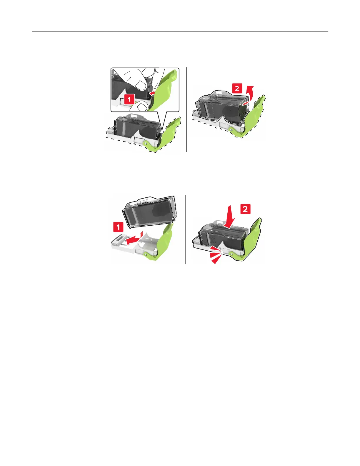 6 Insert the staple cartridge until it clicks into place.