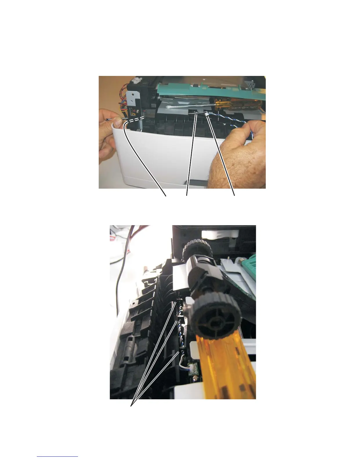 Note: If the cable is not properly installed in its retainers, then the loose cable will obstruct the paper path.