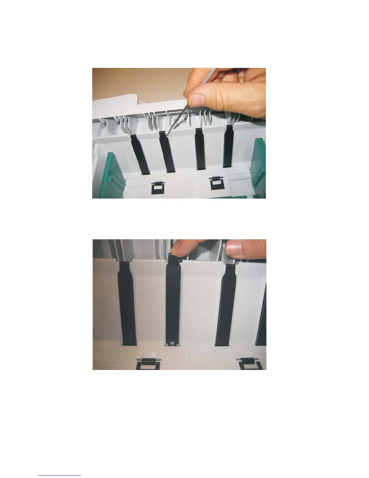 • Turn the tray over to view the bottom of the strip. Using the spring hook, check to make sure that the