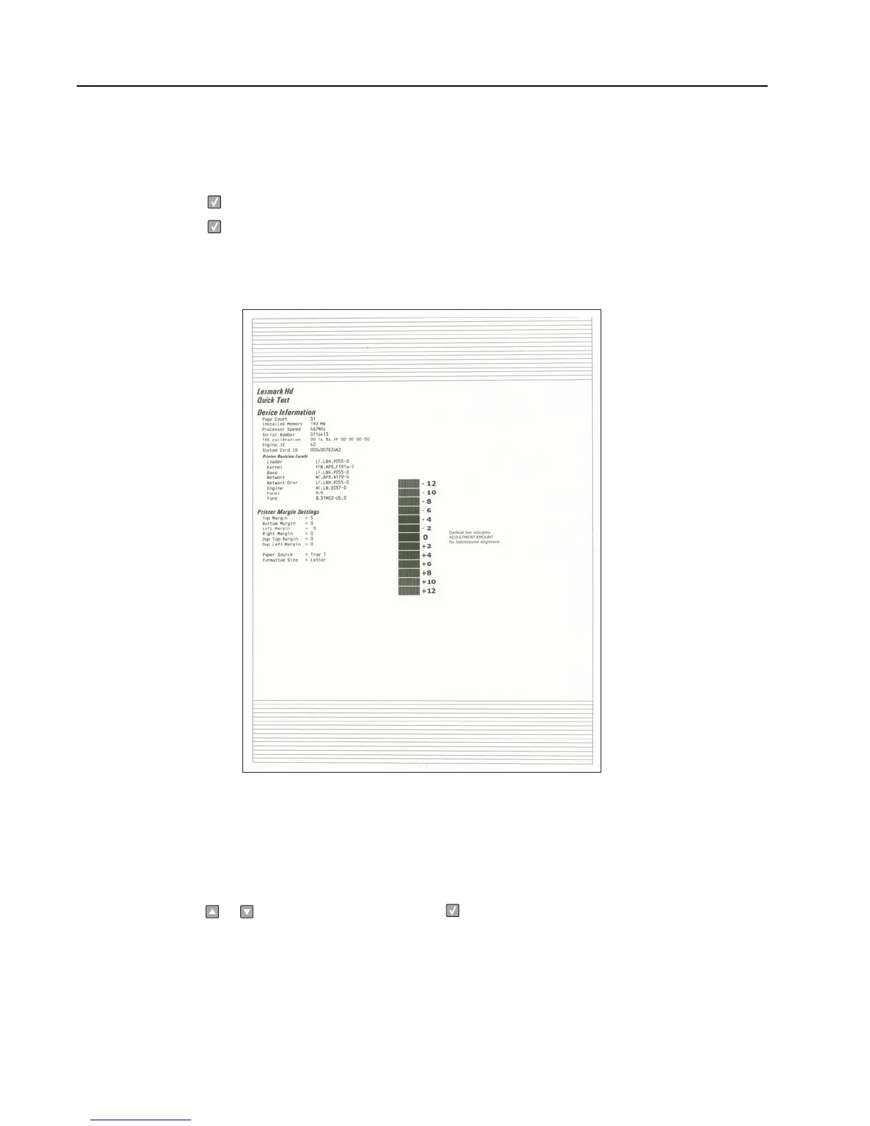 3. Press to print the Quick test page.