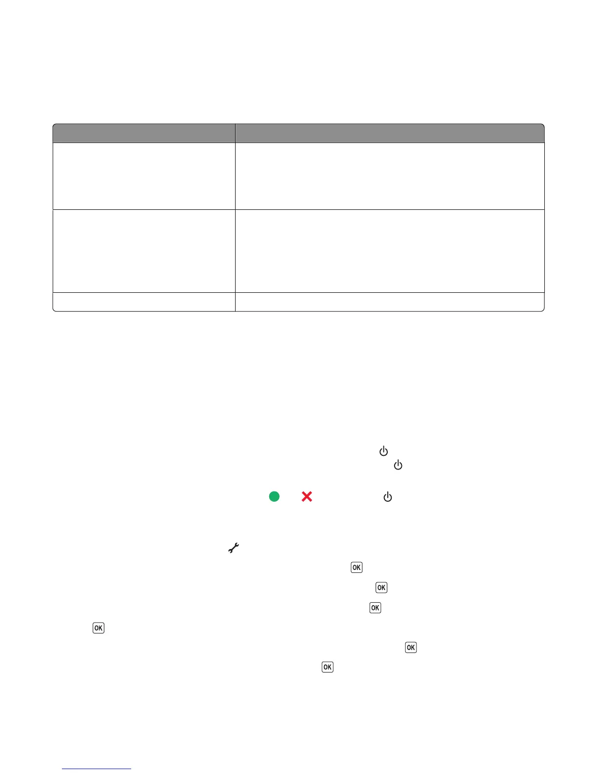 2 From the printer control panel, press and hold and , and then press to turn the printer on.