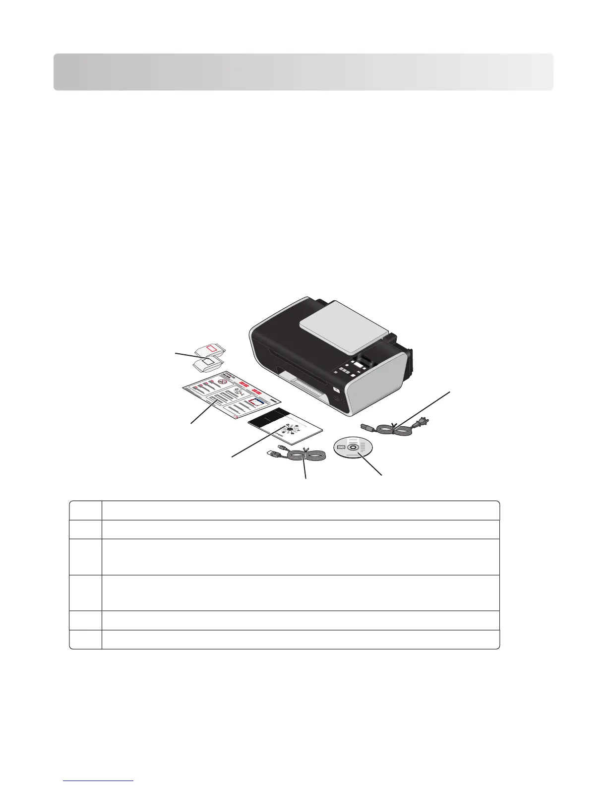 Note: Contents, such as the number of print cartridges, may vary by model.
