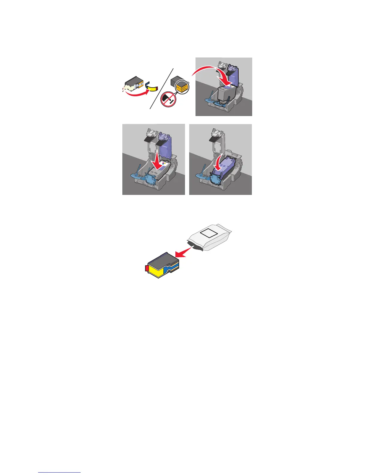12 Remove the tape from the color print cartridge, insert the cartridge in the right carrier, and then close the color