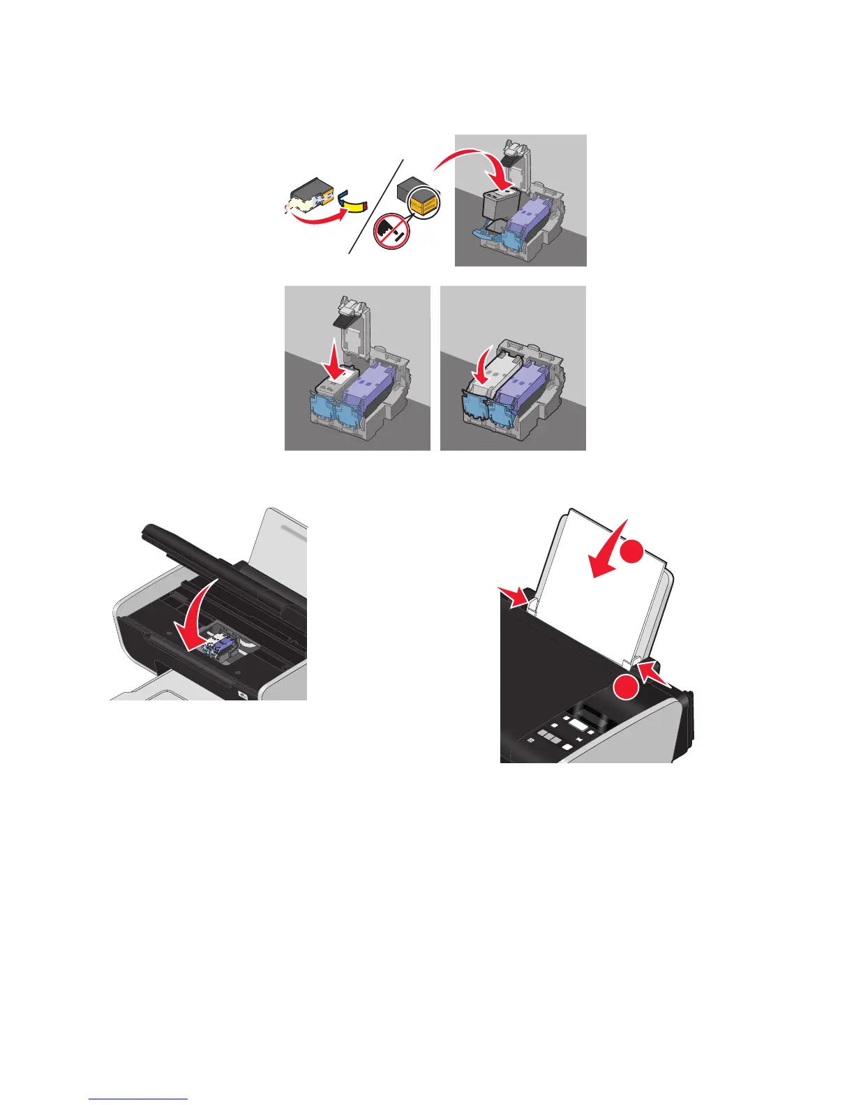 14 Remove the tape from the black print cartridge, insert the cartridge in the left cartridge carrier, and then close