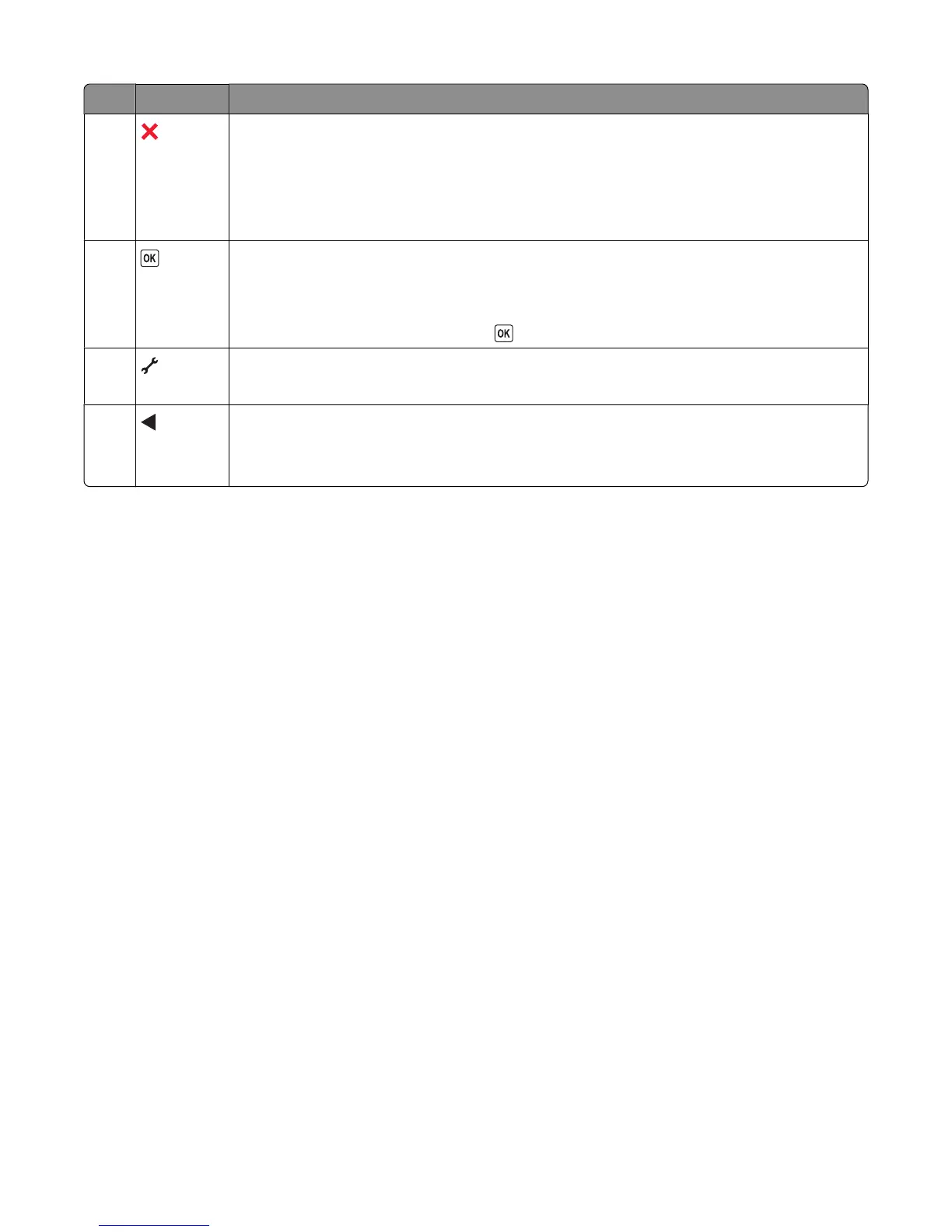 • Exit from a menu level of the Copy, Scan, Photo, and File Print menus to the top level of a