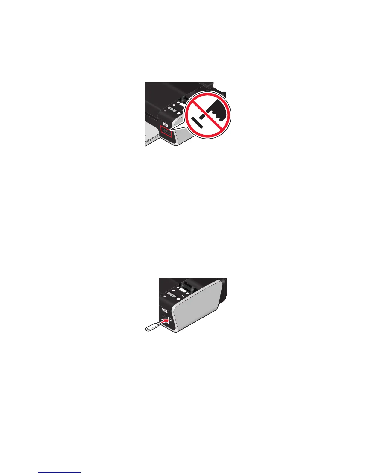 printer in the area shown while actively printing, reading, or writing from the flash drive. A loss of data can occur.
